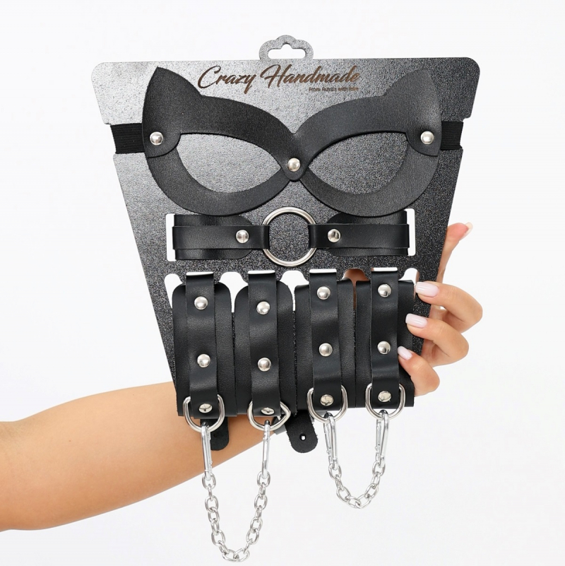 Набор БДСМ-девайсов "Crazy Handmade" маска, наручники, оковы, ошейник