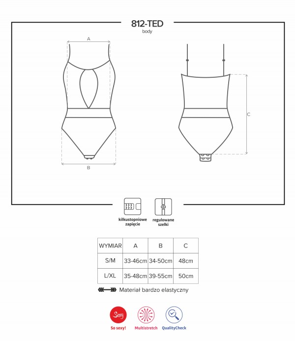 Боди застегивается на промежности, при помощи металлических крючков